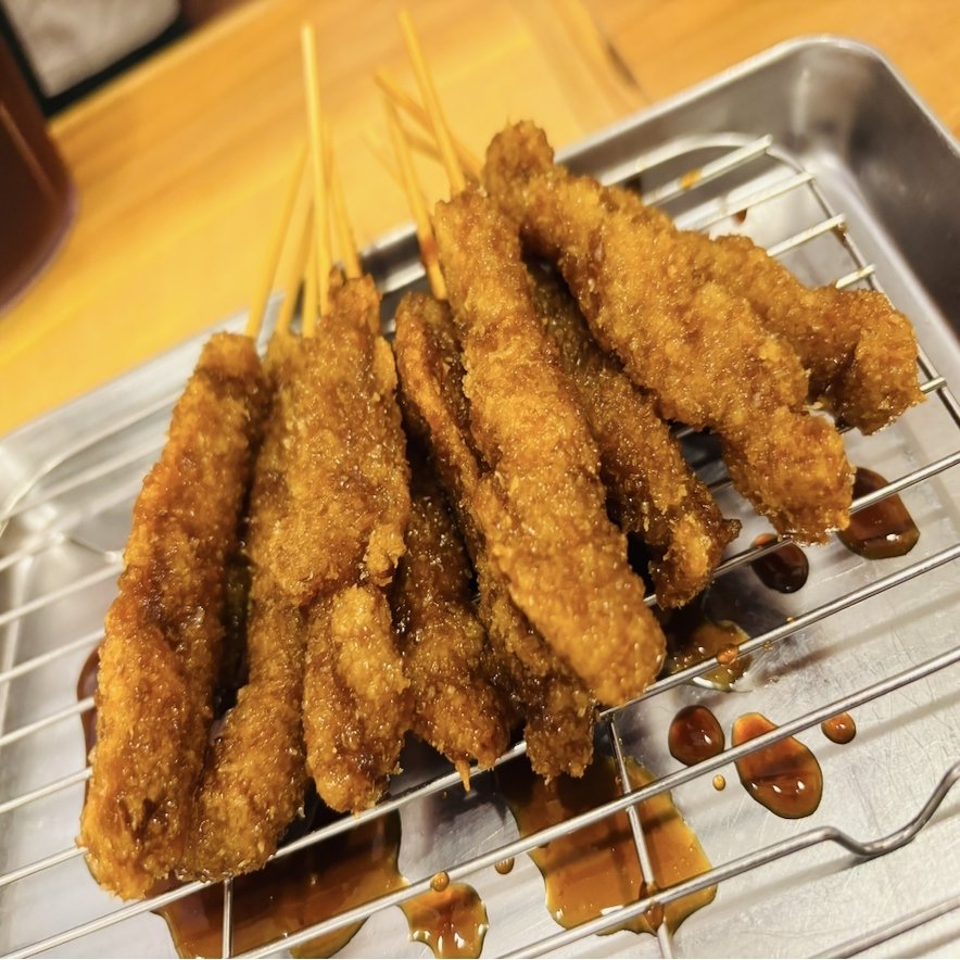 先日に引き続き、また串カツ田中に行きました。この前は自分で焼くたこ焼きに触れましたが、この商品を忘れていました。無限ニンニクホルモン串です。「すぐに出せるメニュー」としてお勧めされるがままに注文。美味して食べやすくて止まらないんです。ただこれを食べすぎると、他の串カツが食べれなくなるので、食べ過ぎ注意ですが、超お勧めです!