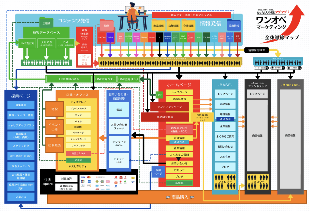 まずは「ワンオペマーケティング – 全体導線マップ -」で営業・集客・販売・採用のマーケティングの導線をしっかり認識!