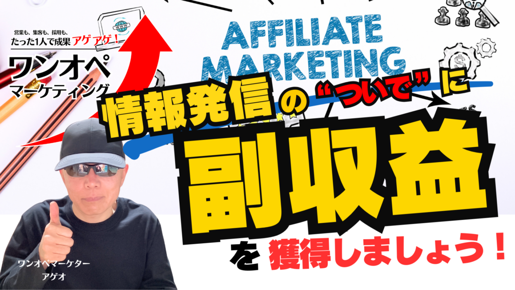 「ワンオペマーケティング」の基本活動である情報発信にアフィリエイトリンクをつけて、副収益を得ていきましょう!