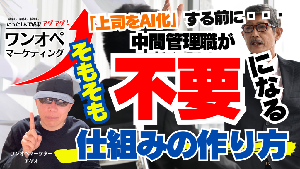 私が提唱する「ワンオペマーケティング(ワンオペOS)」を導入すると、極論を言えば「中間管理職」というポジションそのものが不要になります。